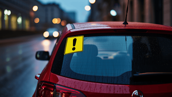 По закону знак «неопытный водитель» должен располагаться на задней части автомобиля. По обычаям его клеят на стекло, но можно его также разместить на крышке багажника или заднем бампере, если он будет заметен.